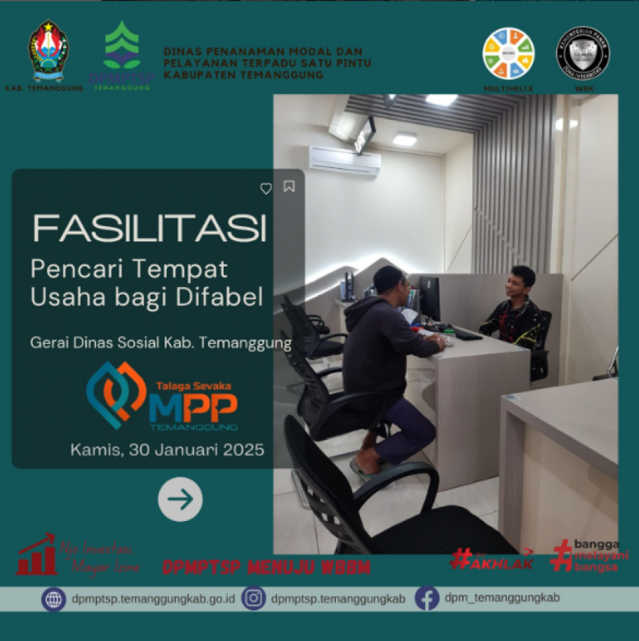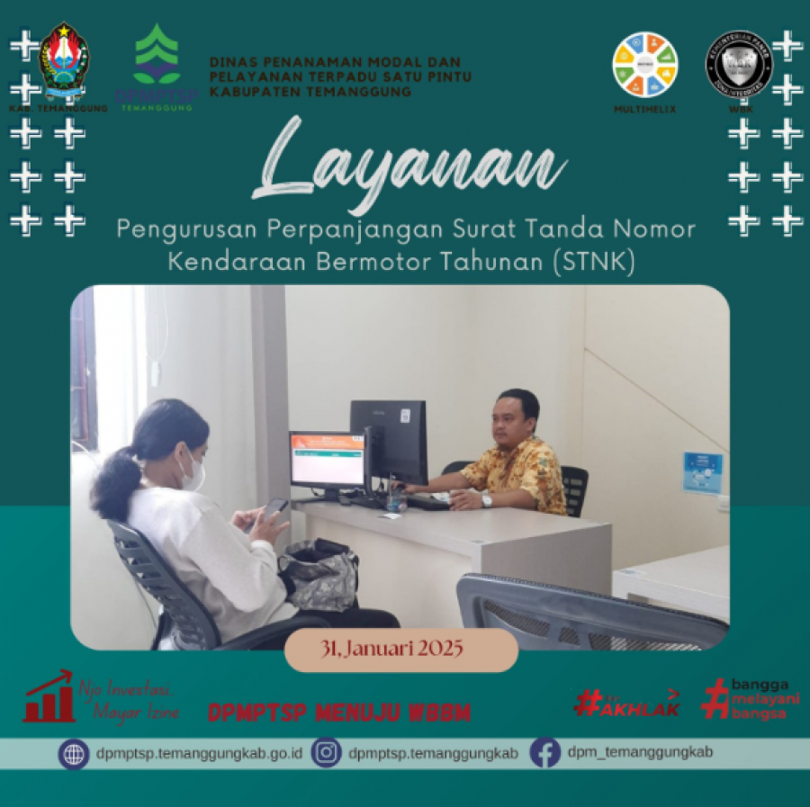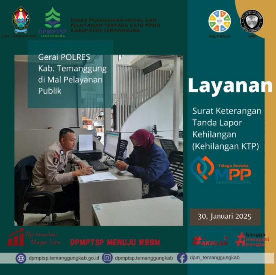 Berita Kategori: Lainnya Sekretariat Jumat, 31/01/2025 11:40 141 Layanan perpanjangan STNK di MPP Selengkapnya Kategori: Lainnya Sekretariat Jumat, 31/01/2025 11:39 150 layanan TASPEN di MPP Selengkapnya Kategori: Lainnya Sekretariat Jumat, 31/01/2025 11:38 83 Rapat Koordinasi Internal Perizinan DPMPTSP Selengkapnya Kategori: Lainnya Sekretariat Jumat, 31/01/2025 11:37 60 Koordinasi dengan PBJ terkait Pegawai non ASN Selengkapnya Kategori: Lainnya Sekretariat Jumat, 31/01/2025 11:29 45 Apel Pagi DPMPTSP Selengkapnya Kategori: Lainnya Sekretariat Kamis, 30/01/2025 11:36 49 Peningkatan Kapasitas dan Penguatan Komitmen OPD Selengkapnya Kategori: Lainnya Sekretariat Kamis, 30/01/2025 11:25 48 Rapat PKKPR Selengkapnya Kategori: Lainnya Sekretariat Kamis, 30/01/2025 11:23 57 Layanan Polres di MPP Selengkapnya Kategori: Lainnya Sekretariat Kamis, 30/01/2025 11:22 60 layanan konsultasi untuk fasilitasi Tempat Usaha bagi difable Selengkapnya Kategori: Lainnya Sekretariat Kamis, 30/01/2025 11:21 50 Rapat Internal DPMPTSP Selengkapnya Kategori: Lainnya Sekretariat Kamis, 30/01/2025 11:19 57 potensi investas Selengkapnya Kategori: Lainnya Sekretariat Rabu, 29/01/2025 11:18 52 Ayo di cek dulu nih masa berlaku paspornya Selengkapnya FirstPrev146147148149150NextLast