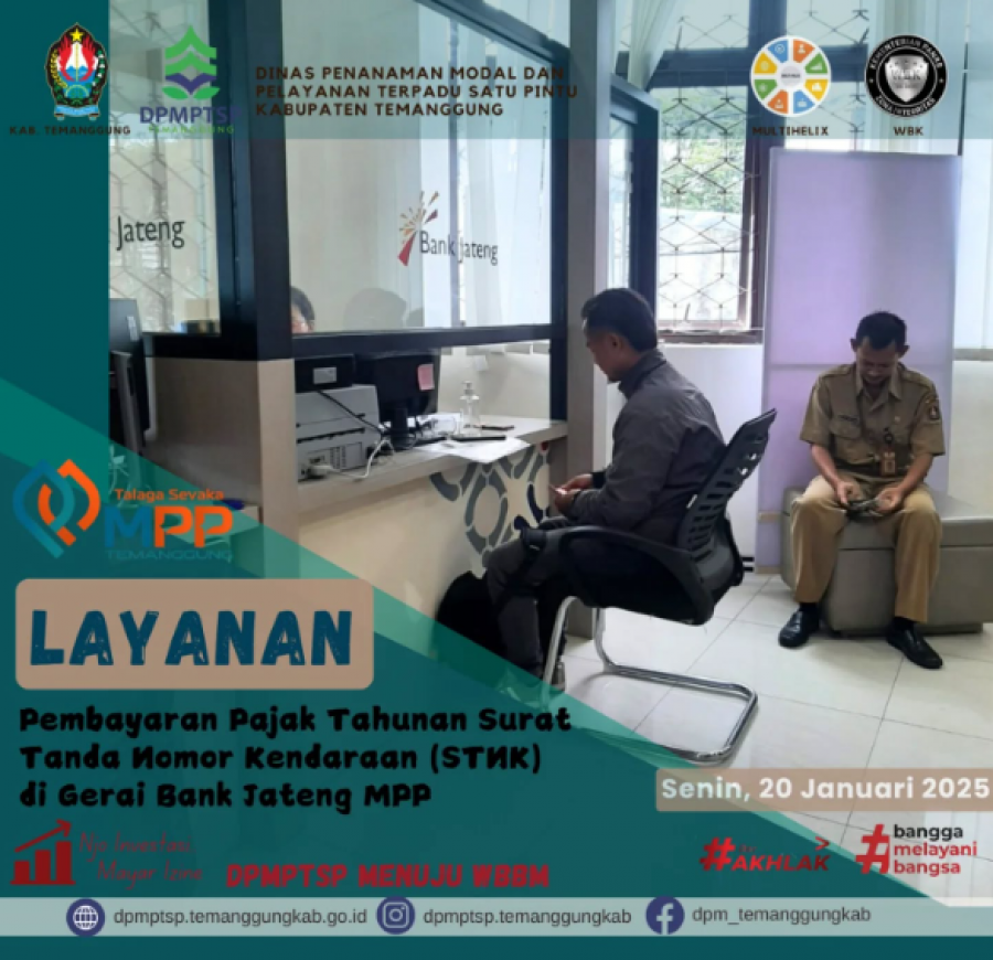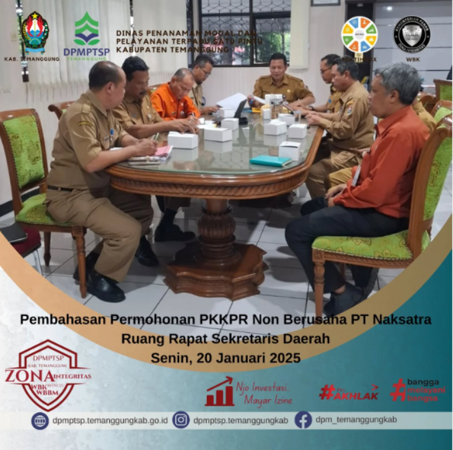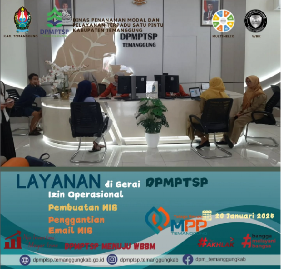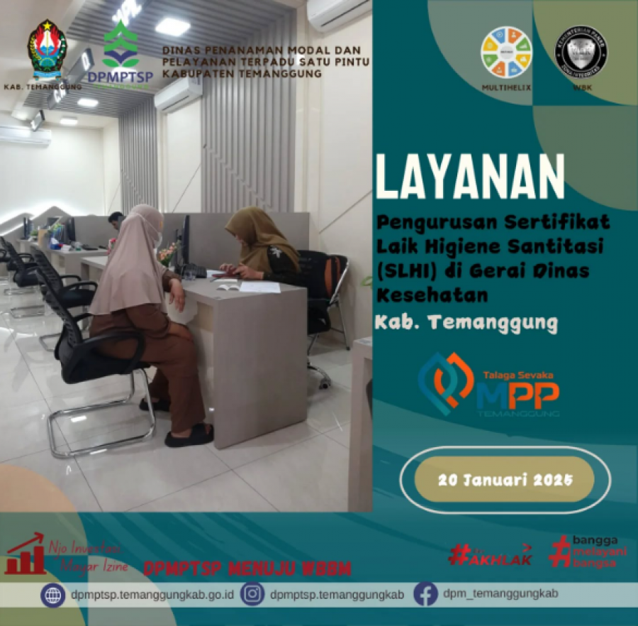 Berita Kategori: Lainnya Sekretariat Selasa, 21/01/2025 10:25 40 sosialisasi aplikasi SPPIRT Selengkapnya Kategori: Lainnya Sekretariat Selasa, 21/01/2025 10:21 36 Rapat koordinasi internal DPMPTSP Selengkapnya Kategori: Lainnya Sekretariat Senin, 20/01/2025 10:24 44 Forum Penataan Ruang Selengkapnya Kategori: Lainnya Sekretariat Senin, 20/01/2025 10:23 47 Audit Kinerja DPMPTSP Selengkapnya Kategori: Lainnya Sekretariat Senin, 20/01/2025 10:19 137 ayanan Pengurusan Sertifikat Laik Higiene Sanitasi (SLHS) Selengkapnya Kategori: Lainnya Sekretariat Senin, 20/01/2025 10:18 45 Layanan DPUPR di gerai MPP Talaga Sevaka Selengkapnya Kategori: Lainnya Sekretariat Senin, 20/01/2025 10:16 42 help desk DPMPTSP di MPP Talaga Sevaka Selengkapnya Kategori: Lainnya Sekretariat Senin, 20/01/2025 10:14 42 Layanan perbankan yang difasilitasi oleh Bank Jateng Selengkapnya Kategori: Lainnya Sekretariat Senin, 20/01/2025 10:13 40 Layanan Pendampingan NIB Selengkapnya Kategori: Lainnya Sekretariat Sabtu, 18/01/2025 11:55 40 Alur Pembuatan NIB Selengkapnya Kategori: Lainnya Sekretariat Jumat, 17/01/2025 10:11 46 Forum PTSP se-Jawa Tengah Selengkapnya Kategori: Lainnya Sekretariat Jumat, 17/01/2025 10:09 49 Sertifikat halal bisa diurus di gerai Kemenag MPP Talaga Sevaka Selengkapnya FirstPrev149150151152153NextLast