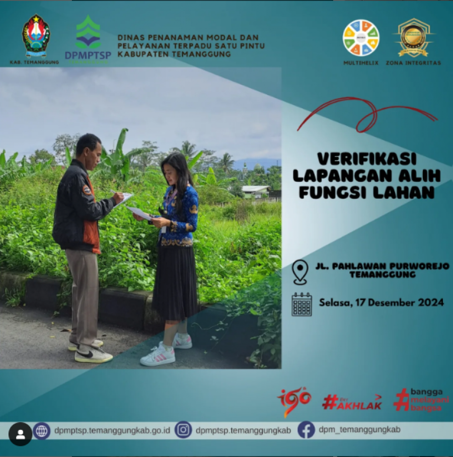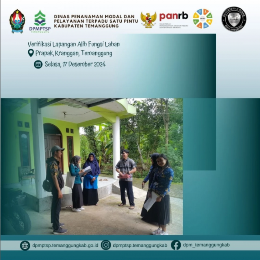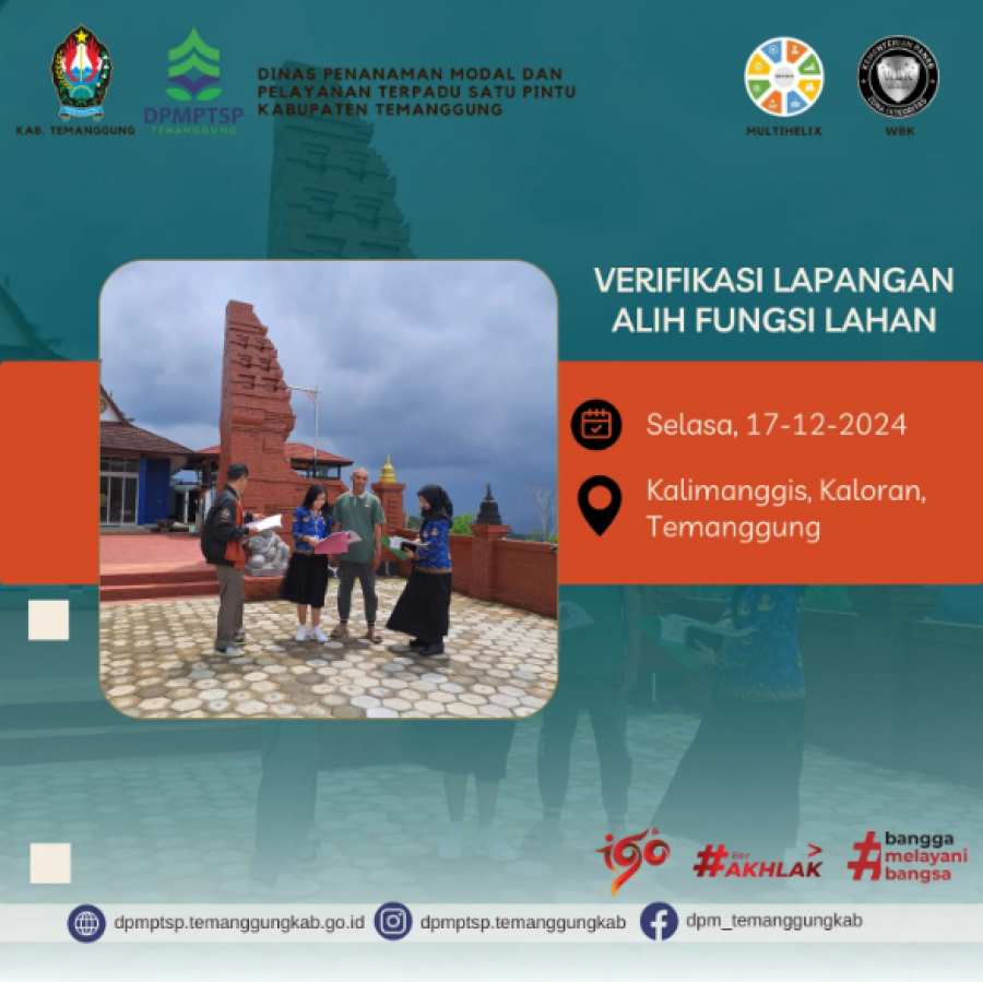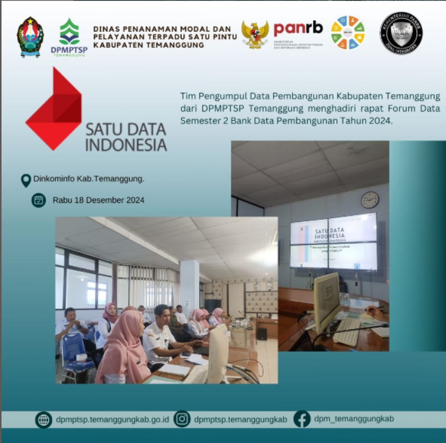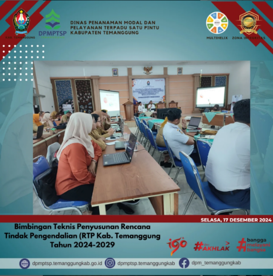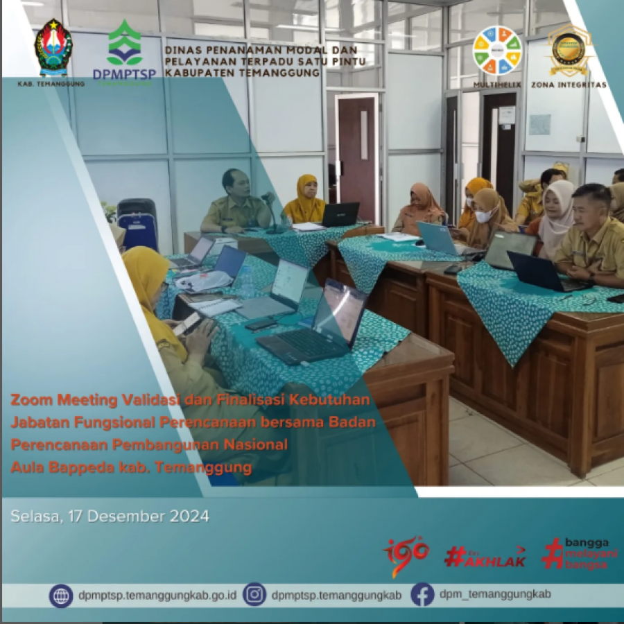 Berita Kategori: Lainnya Sekretariat Kamis, 19/12/2024 13:20 41 Penandatanganan Perjanjian Kerja Sama Selengkapnya Kategori: Lainnya Sekretariat Kamis, 19/12/2024 13:08 41 Zoom meeting Validasi dan Finalisasi Kebutuhan Jabatan Fungsional Perencanaan Selengkapnya Kategori: Lainnya Sekretariat Rabu, 18/12/2024 13:34 41 Desk Evaluasi dan Verifikasi Capaian Kinerja Pembangunan Daerah Selengkapnya Kategori: Lainnya Sekretariat Rabu, 18/12/2024 13:18 48 capaian penghargaan DPMPTSP di tahun 2024 Selengkapnya Kategori: Lainnya Sekretariat Rabu, 18/12/2024 13:14 38 capaian DPMPTSP di tahun 2024 Selengkapnya Kategori: Lainnya Sekretariat Rabu, 18/12/2024 13:13 39 Forum Data Pembangunan Tahun 2024 Selengkapnya Kategori: Pengumuman Sekretariat Rabu, 18/12/2024 13:11 97 Waspada Cuaca Ekstrim Selengkapnya Kategori: Smart Government (Pemerintah Cerdas) Sekretariat Rabu, 18/12/2024 10:31 53 Panduan Pembuatan NIB Selengkapnya Kategori: Lainnya Sekretariat Selasa, 17/12/2024 13:10 49 Verifikasi Lapangan Alih Fungsi Lahan Selengkapnya Kategori: Lainnya Sekretariat Selasa, 17/12/2024 13:07 42 Bimtek RTP Kabupaten Temanggung tahun 2024-2029 Selengkapnya Kategori: Lainnya Sekretariat Selasa, 17/12/2024 13:05 44 Verifikasi Lapangan Alih Fungsi Lahan Selengkapnya Kategori: Lainnya Sekretariat Selasa, 17/12/2024 13:04 38 Verifikasi Lapangan Izin Perubahan Penggunaan Tanah (IPPT) Selengkapnya FirstPrev160161162163164NextLast
