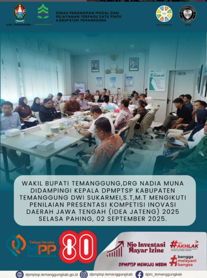 Berita Kategori: Smart Government (Pemerintah Cerdas) Sekretariat Kamis, 04/09/2025 09:59 6 Kegiatan DPMPTSP Selengkapnya Kategori: Smart Government (Pemerintah Cerdas) Sekretariat Kamis, 04/09/2025 09:59 8 Kegiatan DPMPTSP Selengkapnya Kategori: Smart Government (Pemerintah Cerdas) Sekretariat Kamis, 04/09/2025 08:45 6 Kegiatan DPMPTSP Selengkapnya Kategori: Smart Government (Pemerintah Cerdas) Sekretariat Rabu, 03/09/2025 09:58 5 Kegiatan DPMPTSP Selengkapnya Kategori: Smart Government (Pemerintah Cerdas) Sekretariat Rabu, 03/09/2025 09:58 6 Kegiatan DPMPTSP Selengkapnya Kategori: Smart Government (Pemerintah Cerdas) Sekretariat Rabu, 03/09/2025 09:57 5 Kegiatan DPMPTSP Selengkapnya Kategori: Smart Government (Pemerintah Cerdas) Sekretariat Selasa, 02/09/2025 08:44 6 Kegiatan DPMPTSP Selengkapnya Kategori: Smart Government (Pemerintah Cerdas) Sekretariat Senin, 01/09/2025 08:44 7 Kegiatan DPMPTSP Selengkapnya Kategori: Smart Government (Pemerintah Cerdas) Sekretariat Senin, 01/09/2025 08:43 7 Pengumuman Selengkapnya Kategori: Smart Government (Pemerintah Cerdas) Sekretariat Senin, 01/09/2025 08:42 9 Pengumuman Selengkapnya Kategori: Smart Government (Pemerintah Cerdas) Sekretariat Jumat, 29/08/2025 11:44 78 Pengumuman Selengkapnya Kategori: Smart Government (Pemerintah Cerdas) Sekretariat Jumat, 29/08/2025 11:43 61 Pengumuman Selengkapnya FirstPrev7172737475NextLast