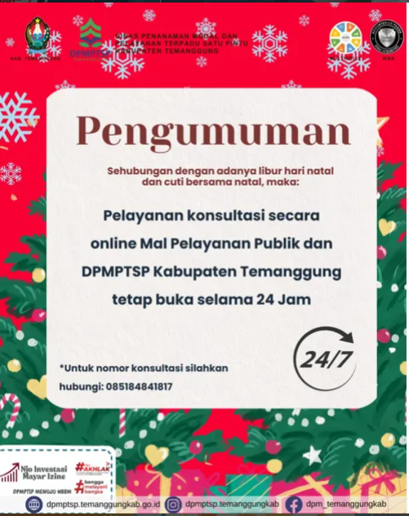 Kategori Lainnya Kategori: Smart Government (Pemerintah Cerdas) , Lainnya 31 Desember 2025 13:07:00 18 PREDIKAT PRIMA MPP Selengkapnya Kategori: Smart Government (Pemerintah Cerdas) , Lainnya 31 Desember 2025 13:02:00 13 SELAMAT TAHUN BARU TAHUN 2026 Selengkapnya Kategori: Lainnya , Lainnya 31 Desember 2025 13:01:00 11 Penghargaan DPMPTSP Selengkapnya Kategori: Lainnya , Lainnya 31 Desember 2025 12:57:00 8 Penghargaan DPMPTSP Selengkapnya Kategori: Smart Government (Pemerintah Cerdas) , Lainnya 31 Desember 2025 12:56:00 9 Penghargaan DPMPTSP Selengkapnya Kategori: Smart Government (Pemerintah Cerdas) , Lainnya 31 Desember 2025 12:47:00 9 Penghargaan DPMPTSP Selengkapnya Kategori: Smart Government (Pemerintah Cerdas) , Lainnya 31 Desember 2025 12:41:00 9 Penghargaan DPMPTSP Selengkapnya Kategori: Pengumuman , Lainnya 30 Desember 2025 12:49:00 12 HIMBAUAN MALAM PERGANTIAN TAHUN BARU 2026 Selengkapnya Kategori: Pengumuman , Lainnya 25 Desember 2025 10:38:00 11 Selamat Hari Natal 2025 Selengkapnya Kategori: Pengumuman , Lainnya 24 Desember 2025 10:39:00 10 PENGUMUMAN!!! Selengkapnya Kategori: Lainnya , Lainnya 22 Desember 2025 10:36:00 5 Upacara Hari Ibu Selengkapnya Kategori: Smart Government (Pemerintah Cerdas) , Lainnya 22 Desember 2025 10:35:00 3 Jempol Boss Selengkapnya 123NextLast