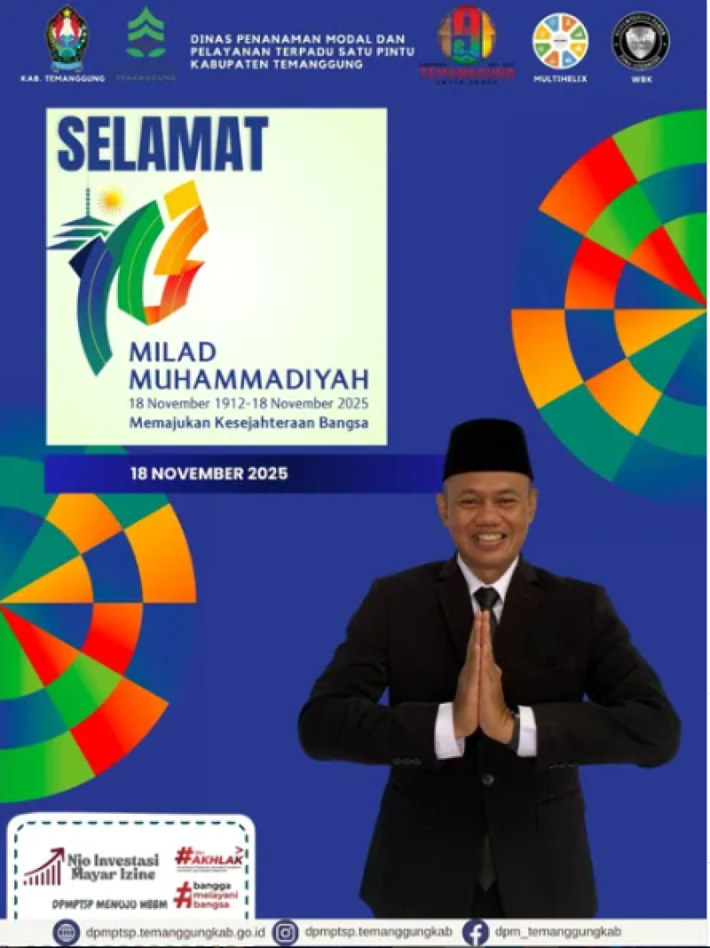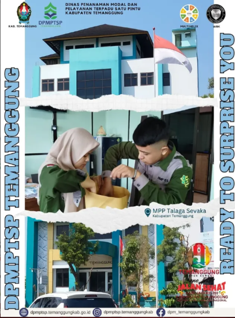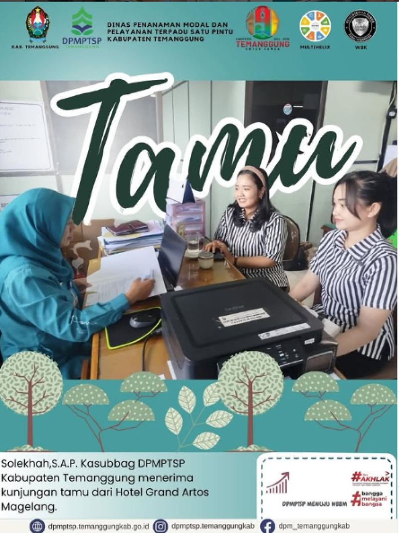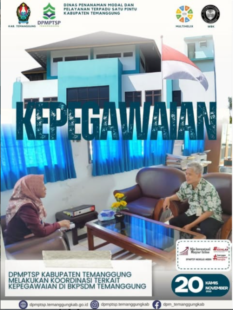 Kategori Lainnya Kategori: Lainnya , Lainnya 19 November 2025 18:53:00 2 MAGANG & KKN TERINTEGRASI INISNU TEMANGGUNG DI DPMPTSP TEMANGGUNG Selengkapnya Kategori: Pengumuman , Lainnya 19 November 2025 18:51:00 26 Jalan Sehat Dalam Rangka Hari Jadi Kab.Temanggung ke-191 Selengkapnya Kategori: Pengumuman , Lainnya 19 November 2025 18:50:00 28 Jalan Sehat Dalam Rangka Hari Jadi Kab.Temanggung ke-191 Selengkapnya Kategori: Pengumuman , Lainnya 19 November 2025 18:49:00 21 Jalan Sehat Dalam Rangka Hari Jadi Kab.Temanggung ke-191 Selengkapnya Kategori: Pengumuman , Lainnya 19 November 2025 18:47:00 15 Jalan Sehat Dalam Rangka Hari Jadi Kab.Temanggung ke-191 Selengkapnya Kategori: Lainnya , Lainnya 19 November 2025 12:19:00 3 Koordinasi Kepegawaian Selengkapnya Kategori: Lainnya , Lainnya 18 November 2025 18:35:00 6 Selamat Milad Muhammadiyah Selengkapnya Kategori: Lainnya , Lainnya 18 November 2025 18:34:00 5 Layanan DPMPTSP Kabupaten Temanggung Selengkapnya Kategori: Lainnya , Lainnya 18 November 2025 18:33:00 5 Layanan DPMPTSP Kabupaten Temanggung Selengkapnya Kategori: Lainnya , Lainnya 18 November 2025 18:31:00 5 Layanan Izin Reklame Selengkapnya Kategori: Lainnya , Lainnya 18 November 2025 18:30:00 5 Layanan MPPD Selengkapnya Kategori: Lainnya , Lainnya 18 November 2025 18:29:00 4 Kunjungan Tamu Selengkapnya Prev12345NextLast